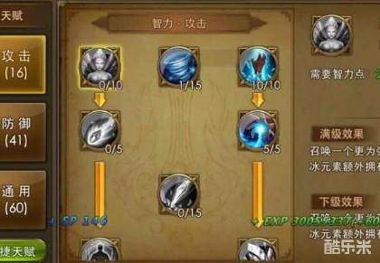 第一层加冰封伤害,第二层空蓝的触发几率,别小看这伤害,但是配合防御41点天赋效果非常好,这两点都很实用。加出18点是为了加出通用左侧前三项,攻击、生命、攻速三大主要属性加成。这样加法的成型期比较快在130级左右。