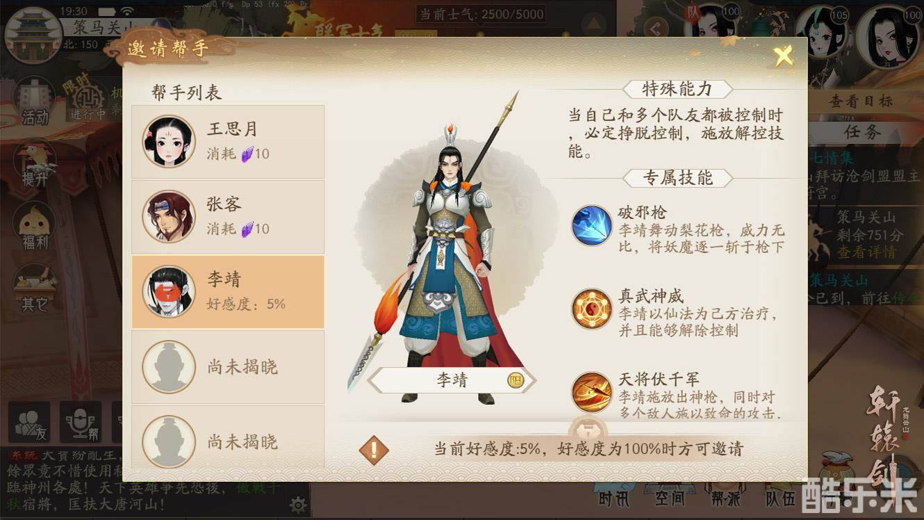 全新推出的“策马关山”玩法,将在现有各具特色的玩法活动基础上,进一步丰富玩家的游戏体验。限时活动开启后,各方正义之士即可单人或组队前往挑战,突破西方魔族布下的重重关卡,戍卫神州大地。进入每关挑战前,都可查看情报,知己知彼,依据敌方属性与技能制定策略,掌控战局。