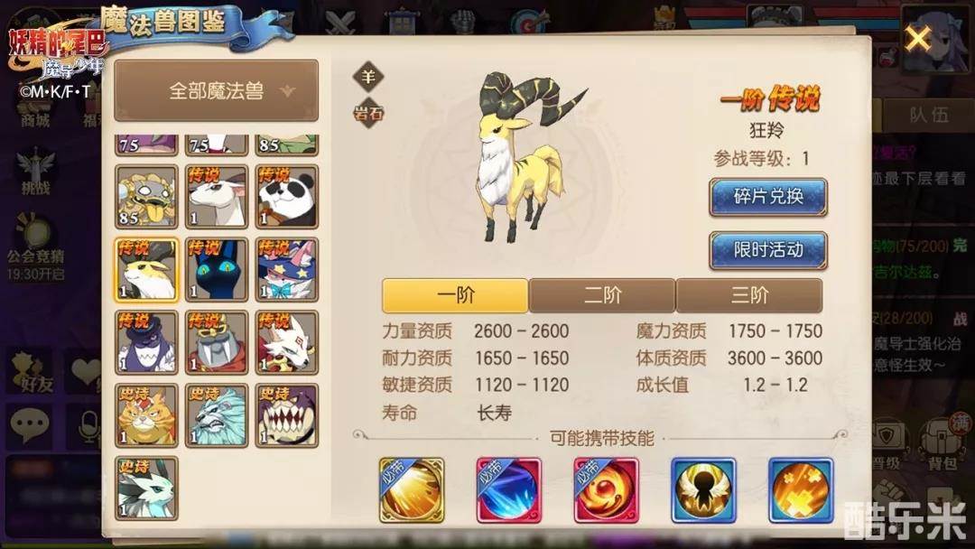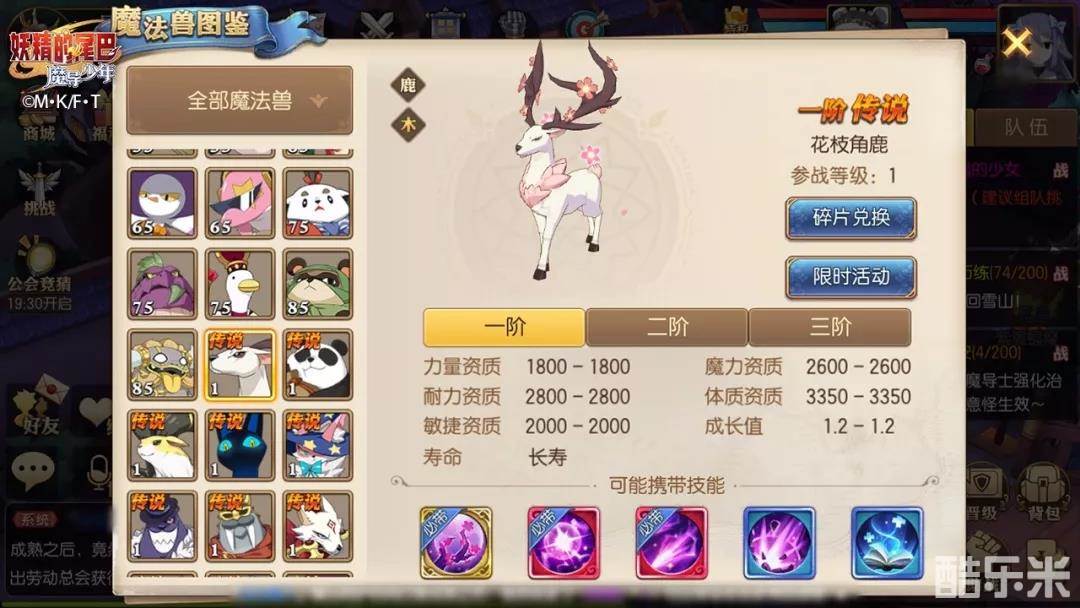 可搭配花枝角鹿、王鹿等群攻型魔法兽,在魔法兽的技能方面,输出型魔法兽可以选择『会心』、『弑灵』、『战吼』等技能,提高伤害!