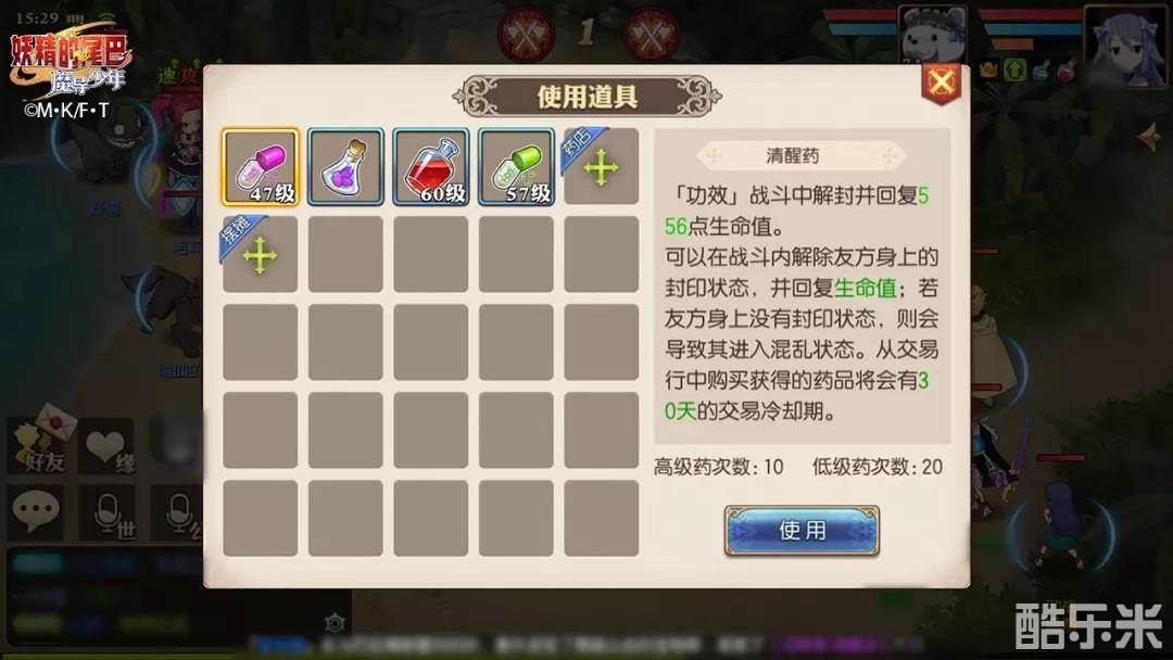 在魔法兽的回合,可以点击『背包』按钮从中使用药品,例如回复生命的『生命药』,复活的『治愈药』,以及解封的『清醒药』、『高级活性药』等等,及时为队伍里的魔导士回血解封