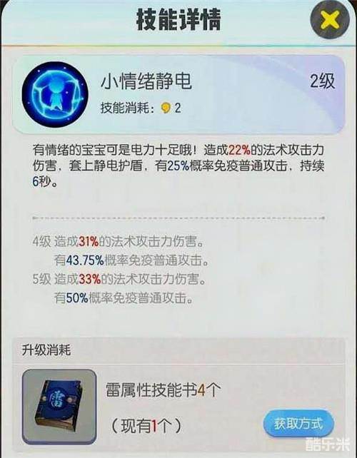 小情绪静电的效果为:造成一定的法术攻击伤害,并为自己施加一个静电护盾,静电护盾有一定的概率免疫普通攻击伤害。
