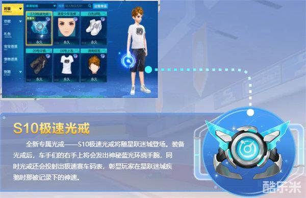 全新专属光戒——S10极速光戒将随星跃迷城登场。装备光戒后,车手们的右手上将会发出神秘蓝光环绕手腕,同时光戒还会投射出极速赛车码表,彰显玩家在星跃迷城疾驰时那被记录下的神速。