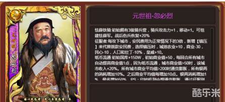皇帝成长计划2H5忽必烈是元清卡包的一张帝卡,那么皇帝成长计划2忽必烈怎么样有什么用?下面小编就为大家整理带来解答: