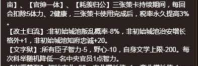 差不多澄清吏治第一波结束之后,就赶紧使用3张策卡,建议顺序为紫蓝白,期间坚持农业建设,3年的痛苦期之后你就会发现经济小起飞了。再用一波策卡,经济就是大起飞,你能想象两个季度农业税翻2倍的快乐吗?你能想象建造速度减半的喜悦吗!还有税收+3,你都值得拥有。
