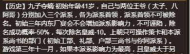 如果玩非历史模式只有两个技能,没有九子夺嫡,不能觉醒,没有时间上的紧迫感,还是挺没意思的,所以主要还是讲讲历史模式。由于操作难度较大,重点讲解整体节奏问题