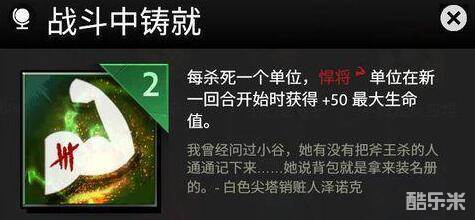 首先这个天赋的作用是每杀死一个单位,悍将单位在新一回合开始时获得+50最大生命值。悍将就是兽人,也就是说兽人棋子在每杀死一个单位就能获得50生命值,而且不是单回合增长,而是可以一直积累的,大家如果喜欢用兽王剑圣棋子只要拿了超多的人头,那么他们的血量就会无限成长,中后期五六千血的兽王剑圣是十分容易的。