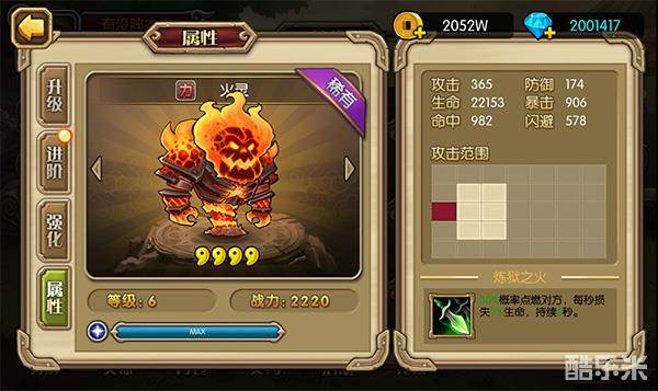 作为稀有级的英雄,火灵的属性或许没有很突出,但各方面都算比较均匀,拥有强力的输出技能,按百分比伤害的技能用来对付敌方的肉盾再适合不过了,火灵的位置最好根据敌方肉盾的位置来调整,把他放在敌方肉盾的对面,利用技能特性来完成击杀。