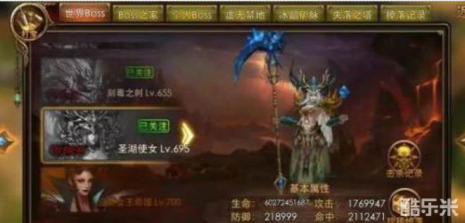 世界BOSS695,目前最肉的的BOSS,血量602.72亿,测试时容错率高。