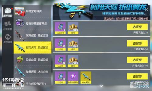 例行维护后,玩家们还可以参与枪械补给和时装补给抽取活动,抽取两种补给均可免费获得奖励,达到一定次数后更可以直接领取AKM-翼龙和折纸霸王龙外观;参与游戏完成任务,获取折纸勋章,消耗折纸勋章可以兑换棒球公主限时外观和其他游戏内道具;每周乱斗玩法更换为北仓狙神,狙击手之间的对决,一发入魂的快感!