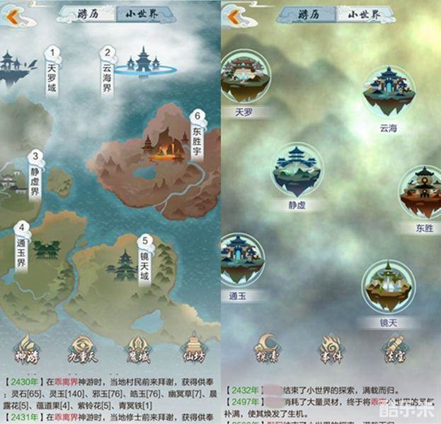 神界的游历更是和地上大有区别,之前提到过,首先地图没有黑雾,每个城寨不一定要战斗,一定会碰到的是各种选项,这个选项就又和自己的人格值相关了,是崇拜还是敬畏,是获得皓玉还是邪玉,都取决于这些选项。游历完一张图后,不仅能不需体力开启神游,还能开启这个阶段的“小世界”副本,每天探索还可以获得许多其他资源。