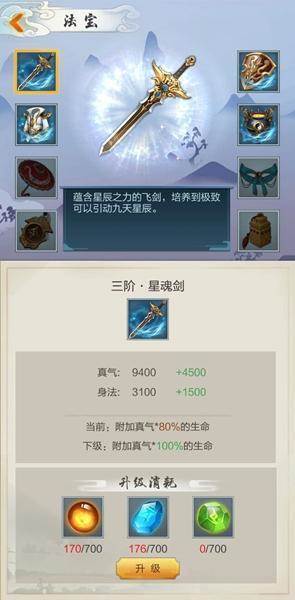 最后,道友们自身的装备在神界新增了“法宝”一种,同样也是增加属性的,升级法宝的资源主要就是来自于游历和探索小世界。