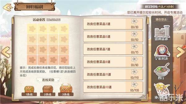 宾果活动需要回归的御侍大人跟随活动达成条件,完成对应任务,获得印花后,将印花贴在宾果格中,连成线即可获得对应奖励。陪伴御侍大人重温游戏玩法及任务流程,快速回忆起曾经和飨灵们一起冒险的日子。