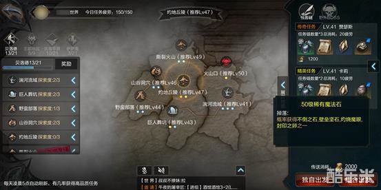 ④任务链:普通地图完成任务链能获得巅峰经验、宝石、锻造图纸、合成材料,50级魔法石(Lv47以上地图),还有几率获得套装部件。