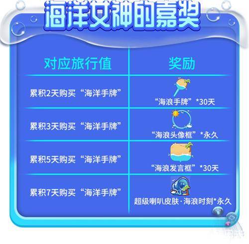根据您在活动期间累积购买“海洋手牌”的天数,领取额外奖励: