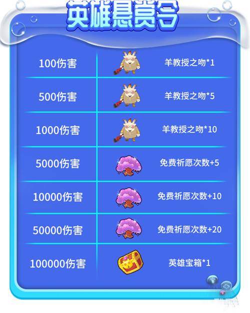 累积达到悬赏令所要求的伤害的玩家可以领取对应奖励,且悬赏令累积的伤害将会保留,直到领取所有悬赏令奖励后,即可重新开始累积伤害并领取对应奖励。