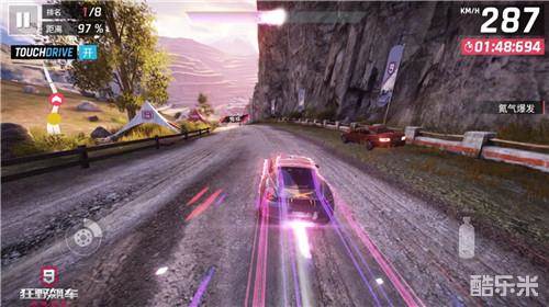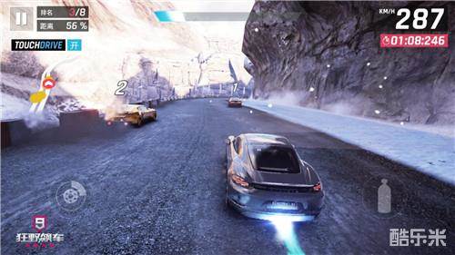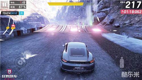接下来就是氮气加速,所谓的氮气加速就是在有氮气的时候,喷射氮气是赛车速度超越本身最大速所设定的。在游戏中分三种加速,普通加速,完美氮气,以及氮气爆发。普通加速会使车辆在氮气释放的时间段里使速度达到车辆本身的最好速度,但完美氮气和氮气爆发则是在更短的时间里使其车速到达最大速或是超过最大速。而Porsche 718 Cayman这款车的进阶加速是超过了本身的最高速的,最高时速俨然达到了287km/h,数值是相当的可观的。