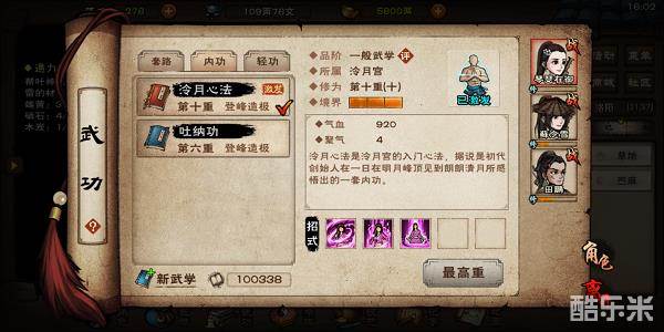 游戏中有着武功系统,武功系统分为进攻套路、内功、轻功三种,每种武功都有基础武学、一般武学、进阶武学等。