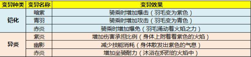 古羽翼龙拥有三个变异种类,每类中的变异状态可单独出现,也可多类状态叠加出现。如图所示: