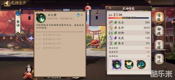 【情报介绍】我们如果想要知道兼顾了驱散与治疗的奶妈虫师的御魂该怎么搭配,首先需要知道她的技能: