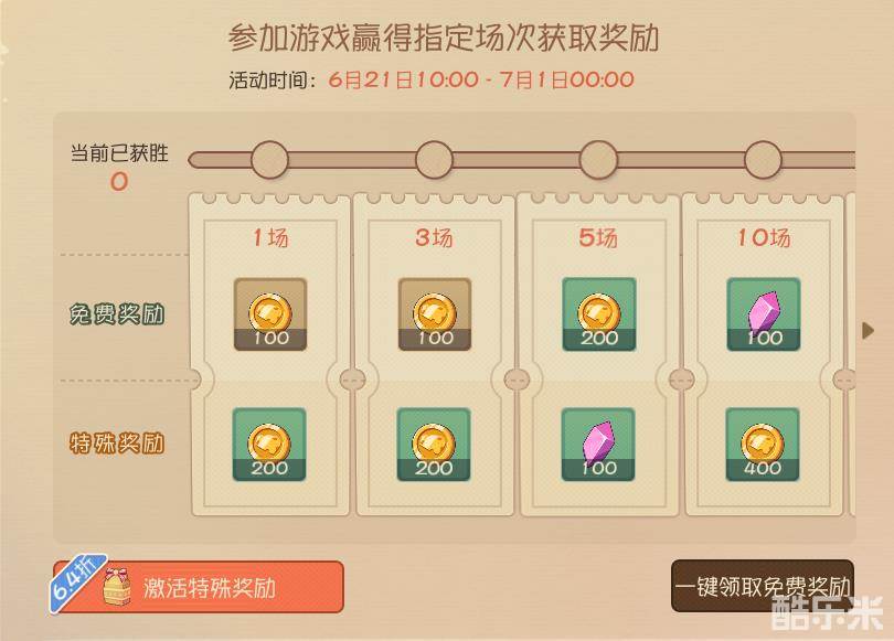 挑战活动期间,获胜方的玩家还将根据胜场数解锁对应奖励,奖励内容包括金币、皮肤精华、知识点等,都是游戏中极为实用的重要资源。如果你激活了特殊奖励权益,将会获得更多的奖励领取次数和更丰厚的奖励内容!