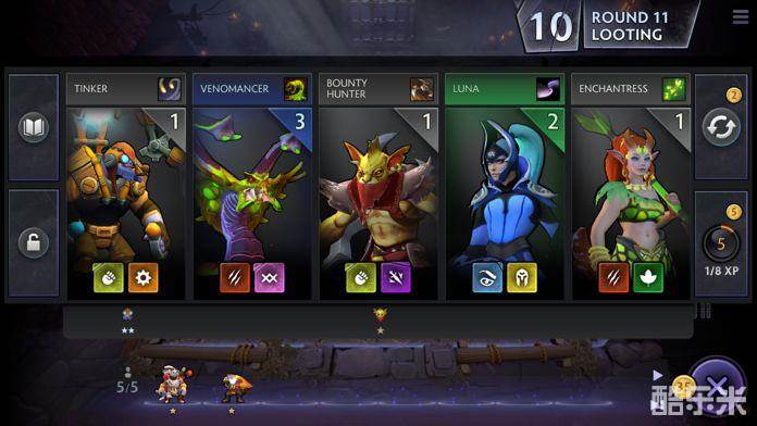 运营思路是7人口少吃息迅速将队伍提升到2级,然后立刻攒钱跳8。由于基本都是冷门卡所以很快能2。。。只有德鲁伊配3所以不用卡格子和浪费钱7人口不要执着熊德顶多顺手拿几张1块的敌法海民