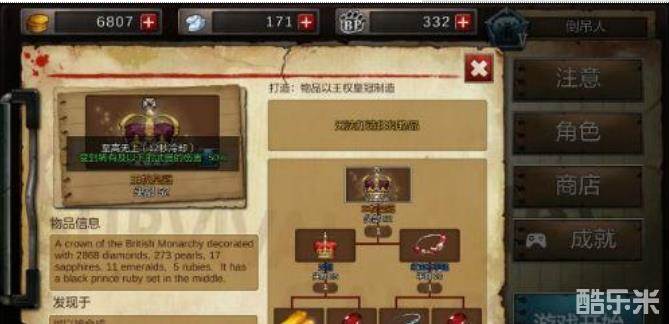 皇冠,很微妙的一件装备,防御点数很一般,合成也不算简单(不过头部的合成基本都不简单),因为特性原因不太适合中端局(草食-肉食之间),特性是受到稀有及以下的武器的伤害减少50%,之后冷却12秒,稀有及以下的武器定义是蓝武及以下。中端局大家开局都在努力憋紫武,会使皇冠没有用武之地,高端局(狮熊龙)大家都在武器防具一起做或者做个蓝武绿武就开始刷熟练到夜晚,快速做出来个皇冠前期会很舒服。