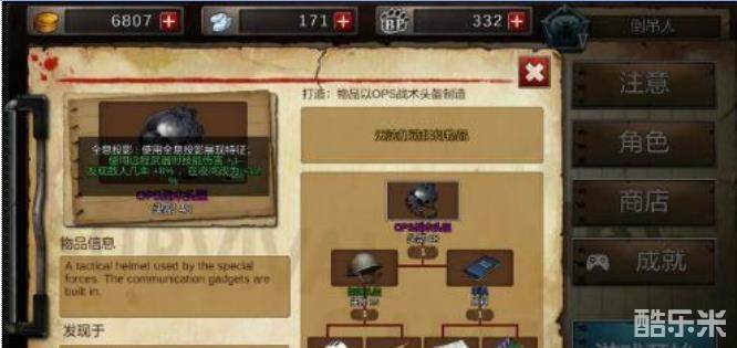 战术头盔,特性是使用远程武器的技能伤害+1,这个很鸡肋不提,还有一个特性是发现敌人的几率+8%,夜间改为12%,总体来说发现敌人的概率增加是个很不错的属性。