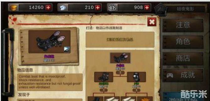 然后是鞋子,我比较推荐各位使用战斗靴,因为战斗靴减免不错,造的材料也少。