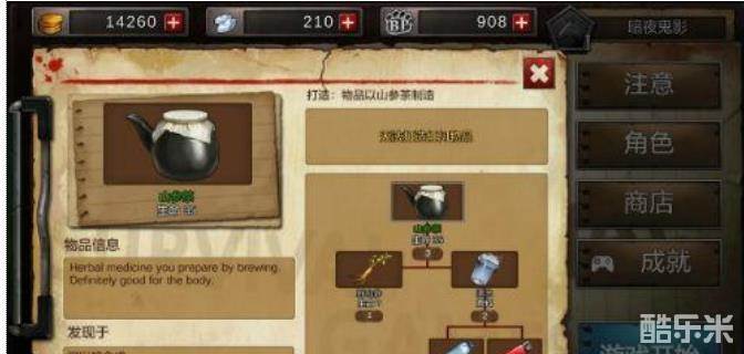 然后是前期小药,去随便哪个地方找打火机造沸水,然后找山参,一次补血虽然少,但是前期倒是挺有用的