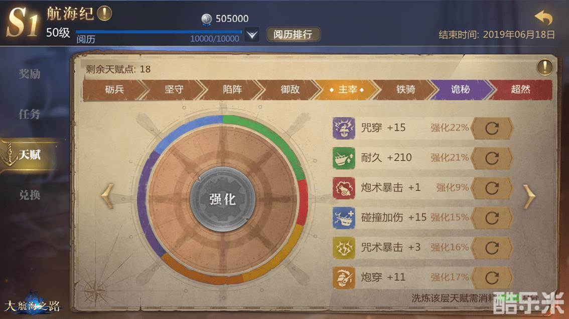 累积一定“航海阅历”数值,船长可提升阅历等级,领取对应等级的航海纪图册中的丰厚奖励之外,还可获得对应航海天赋点。