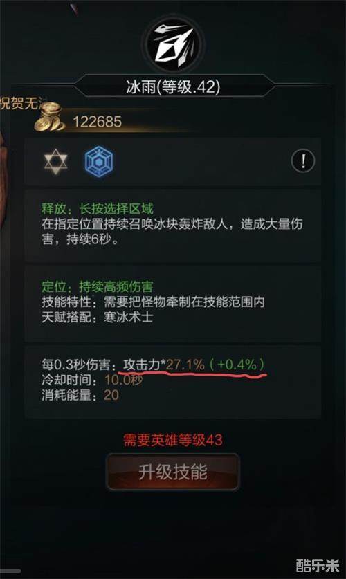 级别低,没点满,左边需要点出“寒冰术士”大天赋,下边需要点出“护盾庇佑”中天赋。