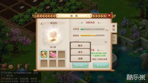 十月怀胎,一朝分娩,但在《问道》手游里只要照顾得当,最短耗时7日左右就能产出娃娃。孕妇需要每天散步、听音乐、丈夫帮忙按摩等方式保持住胎儿的健康值,成熟度累积满了,娃娃就可以出生了!