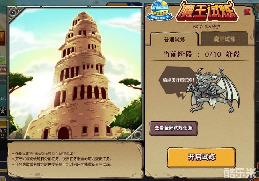 6月27日服务器维护后至9月5日服务器维护前,玩家参与魔王的试炼活动可以获得永久+2,+3稀有装饰以及永久人气服装等你来,快来挑战大魔王发布的任务!