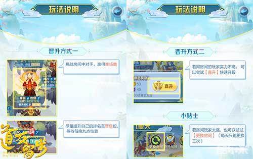 九重天玩法是《道友请留步》内不定期开放的跨服单人PVP玩法,当玩法开放后,每位玩家将被自动划分到一个房间中,玩家在房间内可以任选对手进行挑战,也可以选择一挑十,一口气打败本房间内的全部玩家获得直升资格!