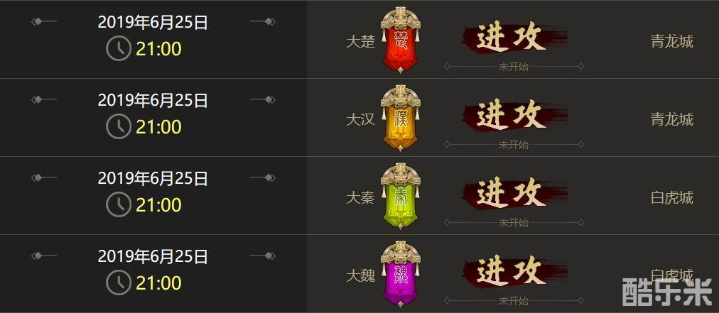 6月22日首场夺权战结束,战场十分火热。我们的首场夺城战直播将于6月25日21:00开启,经过了第一场夺权战的主权之争,已经有四名指挥官大权在握,分别执掌了楚汉秦魏四国!