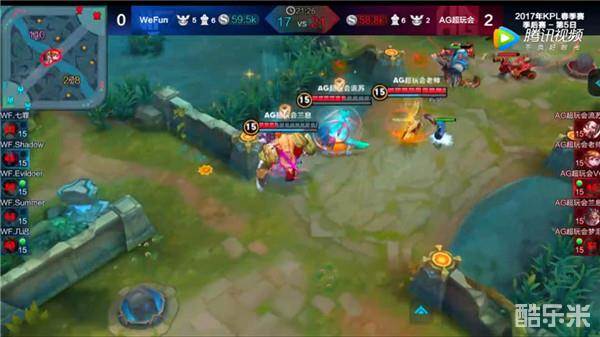 随后WF的东皇太一想要通过身边的三颗黑暗能量体为自己带来的回血效果帮队友抗下伤害,而这时花木兰用自己的二技能将东皇太一逼退,随后释放一技能将东皇太一打掉三分之一的血量,并再次释放一技能,这时东皇太一虽然被AG的队员围攻但是通过三颗黑暗能量体的回复自身还有一半的血量,而花木兰一技能蓄力结束后迅速一刀劈出将东皇太一打成残血,随后东皇太一被AG的队员收割。