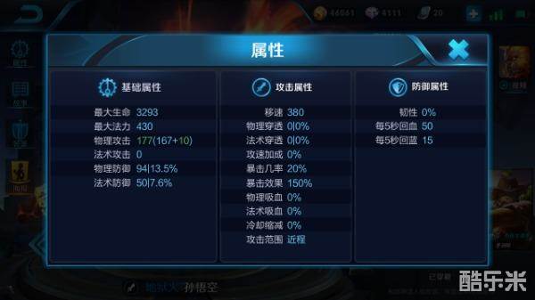作为战士,孙悟空生命值一般,攻击以物理伤害为主,且攻击附带150%的暴击效果加成,可提高其技能伤害值,因孙悟空与多数战士一样擅长近战,因此在对战中孙悟空应注意自己的走位,注意防范敌方法师等带有控制效果的英雄。