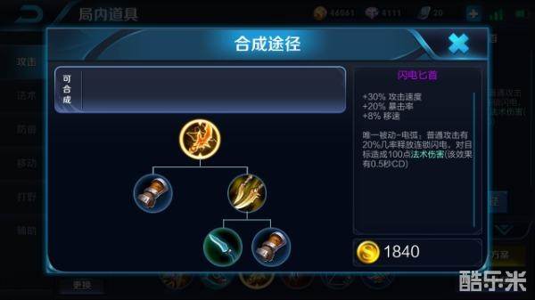 闪电匕首:闪电匕首作为射手普遍运用的装备,对于孙悟空而言也是适用的。合成初期,由匕首与博击拳套优先合成狂暴双刃,狂暴双刃可为孙悟空提升15%的攻击速度,由于孙悟空的伤害主要由释放技能后的下一次普攻为主,因此孙悟空打出普攻伤害的时间是否及时,也将在一定程度上决定了对局的胜败;而狂暴双刃所提供的攻速加成,可加快孙悟空释放技能与普攻的速度,提高击杀敌人的概率。合成后期由博击拳套与狂暴双刃最终合成闪电匕首,闪电匕首可为孙悟空提高30%的攻击速度,同时在无尽战刃的基础上再次为孙悟空提高20%的暴击率。唯一被动-电弧可使孙悟空的普通攻击有20%的几率带有连锁闪电效果,对目标造成小额法术伤害,对于伤害主要由普攻的孙悟空而言,该被动无疑是使孙悟空输出提高的一大助力!