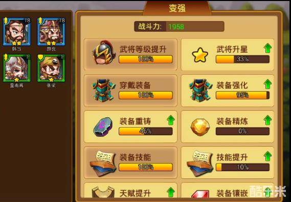 玩家进入变强系统,可以看到所有武将,和武将各项能力。