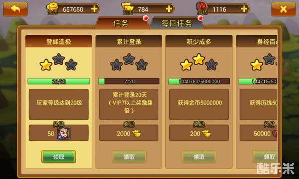 每日日任务会每天刷新一次,在做当前等级的剧情任务的同时,可以去完成每日日常任务,奖励也很丰厚哦。