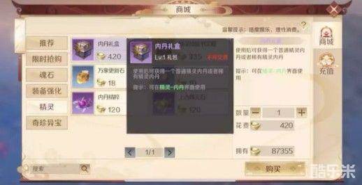 6、在商会中,修真者也可以使用银元宝购买到部分精灵内丹。