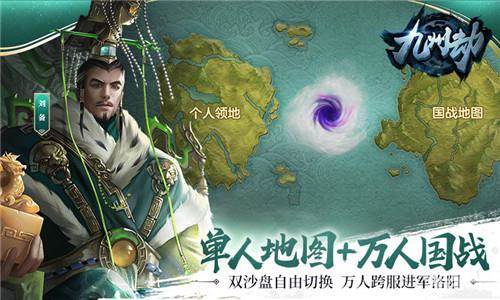何为双沙盘?《九州劫》新颖地设计了“个人剧情”和“万人国战”两大沙盘地图,采用了“无掠夺、无夜战、无VIP制度”设定。在个人地图中玩家可以平稳发育,体验到长达几十个小时的单机剧情、各种解谜小游戏;而在超大的无缝沙盘国战大地图,《九州劫》引入了跨服国战组的概念,通过跨服方式将玩家随机分配到“魏、蜀、吴、乱”四个国家,开启模拟真实战争的万人大战场。每一轮回都以跨服方式遇到不同的对手和盟友,增加了国战的随机性和变数。玩家最终的目标是一路过关斩将,完成“入主洛阳”的霸业。