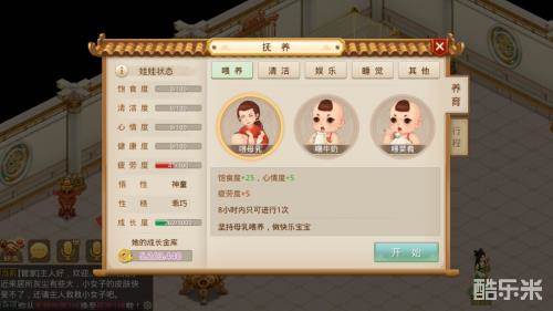 平时拥有天使般面容的娃娃,当心情度较低的时候,便会嚎啕大哭秒变磨人的小妖精,各项养育操作可能由于娃娃大哭而失败,这时就需要道友让娃玩玩具或者陪娃娱乐,来提高娃娃的心情度。