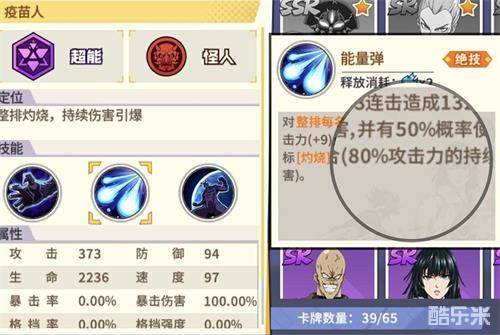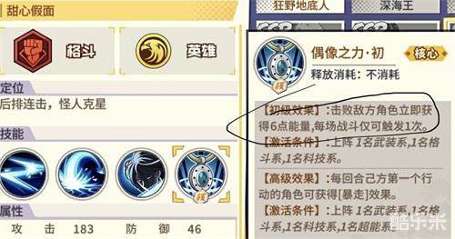 接下来是,假面核心。假面核心的被动是每一回合杀掉一个人可以增加6点能量,但是对于灼烧流来说,第一回合只有两个或三个能量的话,只能放出一个大招,这个大招只能给疫苗人,所以第一回合很难秒掉对面的前排,也就是说,第一回合只能给出疫苗人的大招,地底王没办法出手。