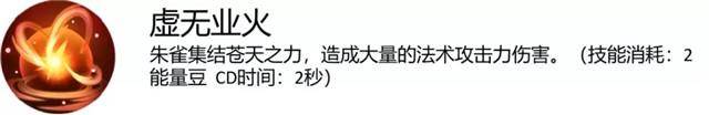 该技能消耗2颗能量豆,CD时间2秒,是朱雀的快速输出技能,1技能伤害倍率65%(满级97%),相对来说中规中矩。