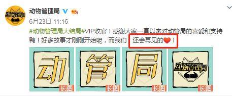 最后编辑于6年前哈喽小伙伴大家好,我是小编粉酱,今天又来找小伙伴们唠嗑了。《动物管理局》已经大结局啦。(以下讨论还有剧透,还没看完的小伙伴谨慎阅读)。有网友说结局还是烂尾了,其实粉酱觉得吧,并没有烂尾,其实该交代的重点还是交代了,留点悬念给第二季。有小伙伴就说了?你怎么知道就肯定有第二季!因为来自官方的暗示!如下图
