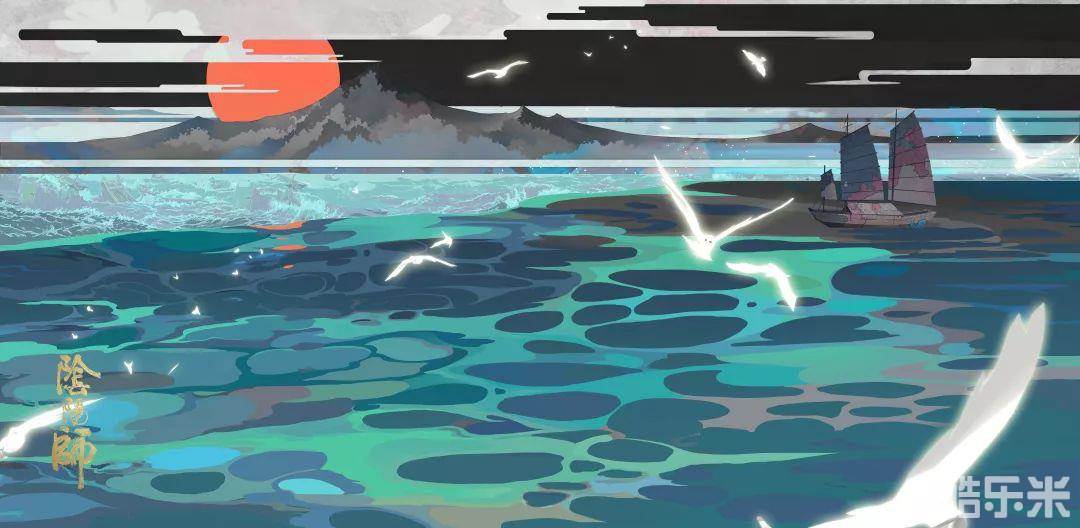 海国一族来势汹汹,黑色巨浪下,庞然猛兽正龇露着獠牙;一个高傲的身影矗立在鬼船船头,背对着滔天骇浪,双目直盯航向前方。