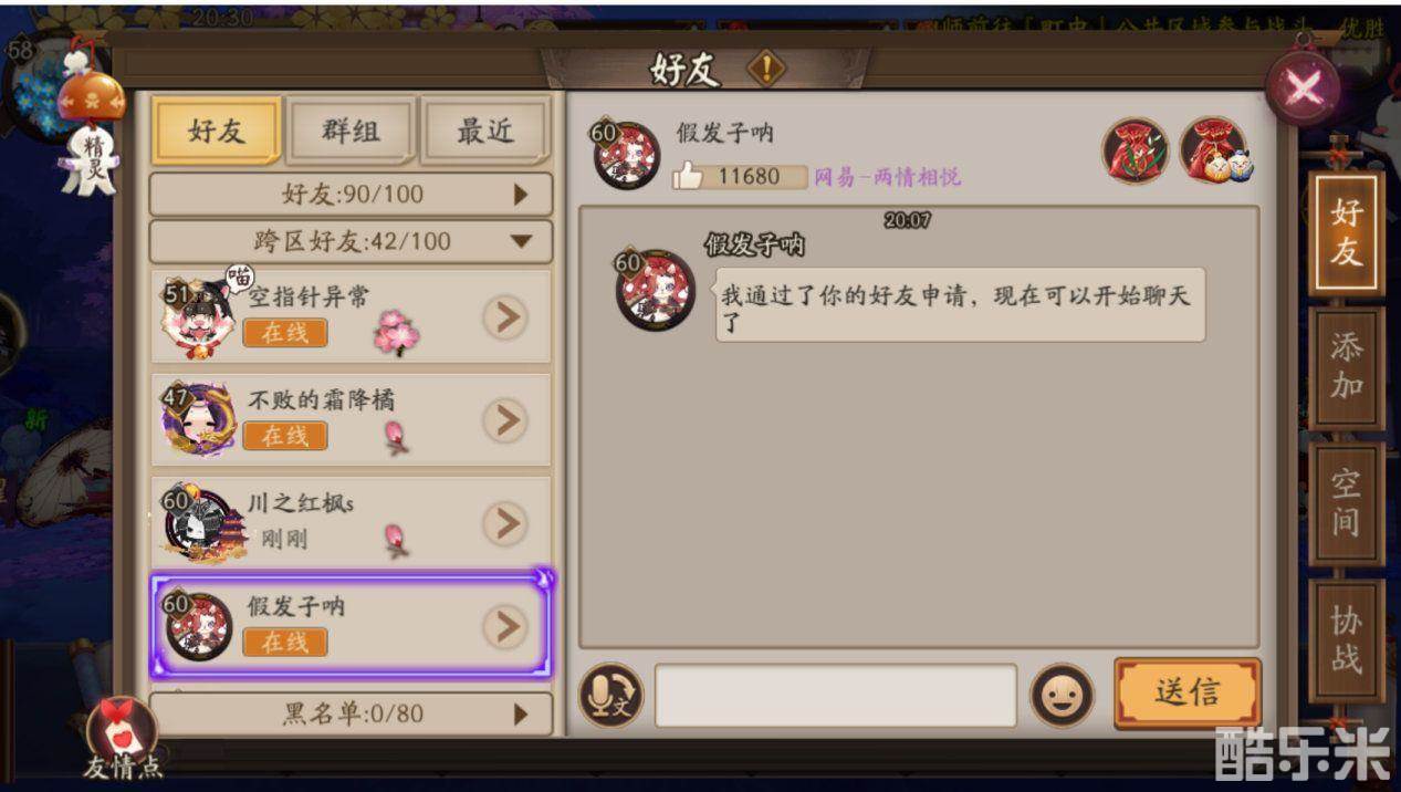 还有一张方法就是将超鬼王的阵容展示到自己的空间式神展示面板上,这样去加那些大佬被同意的机率要大很多。