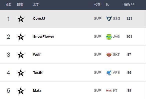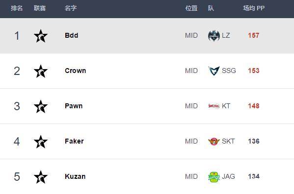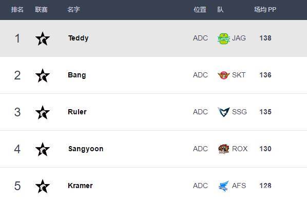 下面是Best.GG LCK第二周选手排行榜: