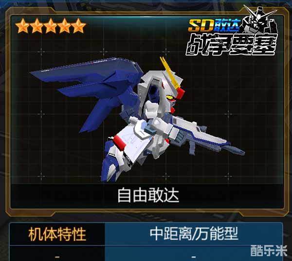 以飞行姿态出现在众人面前的自由敢达是一台中距离/万能型机体。在《SD敢达手机游戏》中,中距离型机体对近距离型机体可以造成大量伤害,而万能型的特质可以让它出现在任何地图出击,沙漠、宇宙都不能阻止它前进的脚步。